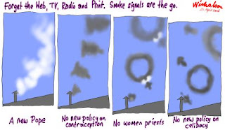 (uma selecção de cartoons sobre este papa e a sua Igreja, seleccionados do arquivo de imagens do Google)