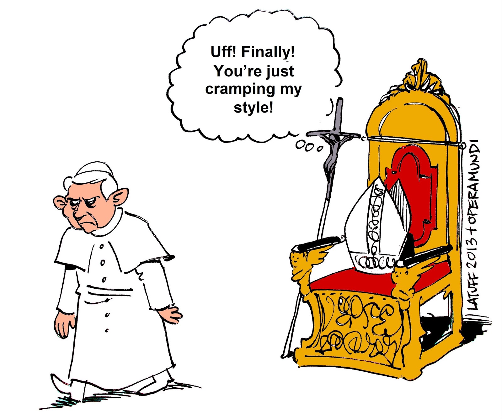 (uma selecção de cartoons sobre este papa e a sua Igreja, seleccionados do arquivo de imagens do Google)