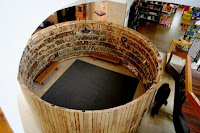 Entrata-se num edifício cheio de luz e recantos, uma estrutura moderna num edifício antigo.
