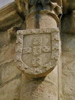 Existe, nas faces das colunas do monumento, um conjunto de quatro escudos “de forma antiga: os da frente ostentando o brazão real que remonta ao século XIII, sendo com toda a probabilidade do reinado de D.Afonso III, e os dois laterais da mesma epoca, representando em tres castelos de linhas sevéras, sobrias de atavios, o velho brazão da antiga Turribus Veteribus.” (7).