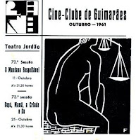 Dois programas de sessões do Cineclube de Guimarães, realizadas em 1961 e 1962. Técnica gráfica do linóleo.O CC de Guimarães é, ainda hoje, um dos mais dinâmicos Cineclubes nacionais.