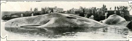 Duas baleias de "cem barris", preparadas para serem cortadas
